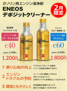 エンジン清浄剤のキャンペーンを2月末まで実施中です!お安いこの機会に是非!詳しくはスタッフまで